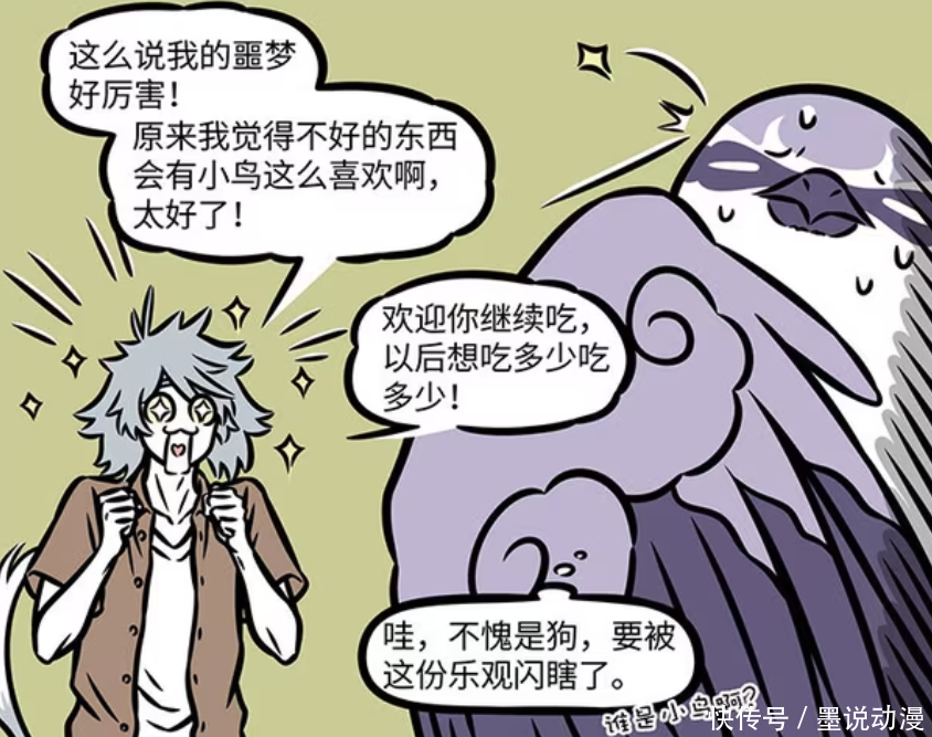 其实哮天是欢腾,他没料想我方的恶梦会这样利害。原来哮天认为不好的东西,会有小鸟这样心爱。大略换位想考到这个历程,难怪哮天一直看起来那么阳光。哮天默示让伯奇赓续吃,不论吃些许皆可以。伯奇也没料想,哮天能如斯乐不雅。