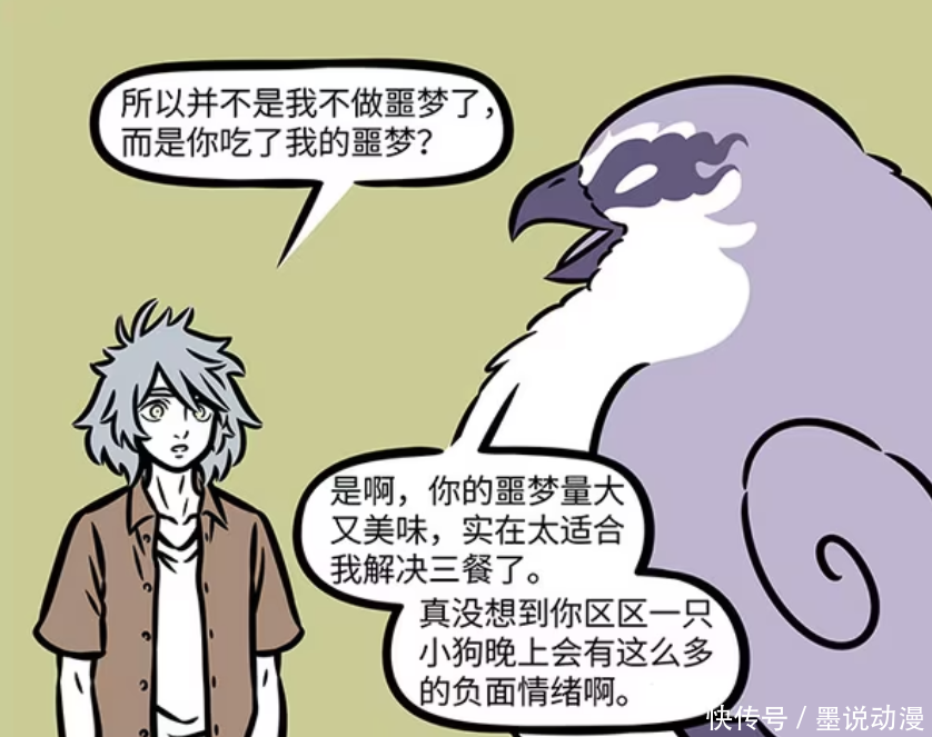 哮天见到伯奇之后,才知说念我方作念恶梦为何变少?那是因为伯奇吃掉了他的恶梦。伯奇默示哮天的恶梦是量大且厚味,很符合管束一天三餐。伯奇也没料想,一只小小的狗晚上还有这样多负面心情。其实咱们也没料想,哮天平方那么恶毒心性,一到晚上会是这个形式。