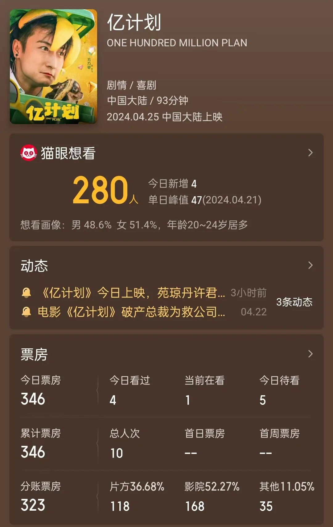 据数据统计,当日只是唯有9东谈主买票,首日票房只是唯有346元。