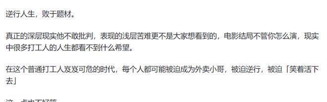 还有的网友示意:“给这电影用钱,不如省下来感谢一下真确的外卖小哥。”