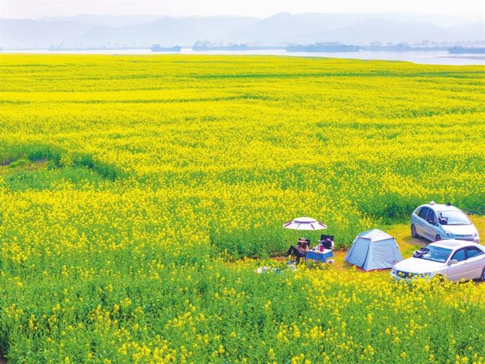阳春三月,万物复苏,枝江顾家店千亩油菜花竞相绽放,金黄色的花朵铺满地面,宛如一幅庞大的油画,迷惑了繁多市民和旅客前来踏青赏花。旅客们盘桓在花海中,或拍照贪恋,或藏身不雅赏,感受着春天的气味。