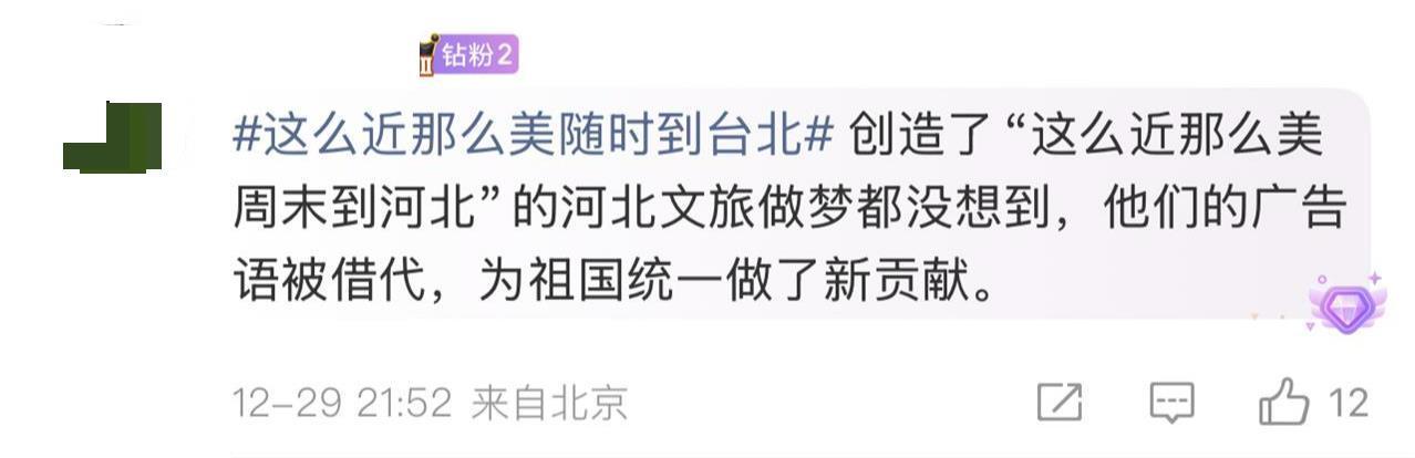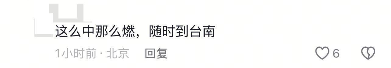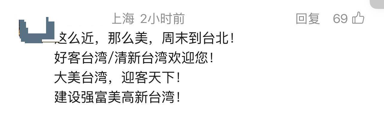 更有网友化用宇宙多地的文旅标语,留言指摘“这样中那么燃,随时到台南”“好客台湾接待您”“簇新台湾接待您”“大好意思台湾,迎客寰宇”“建筑富强好意思高新台湾”,他们用我方的神志,抒发中国竣事协调的相识和两岸本家的血脉亲情。