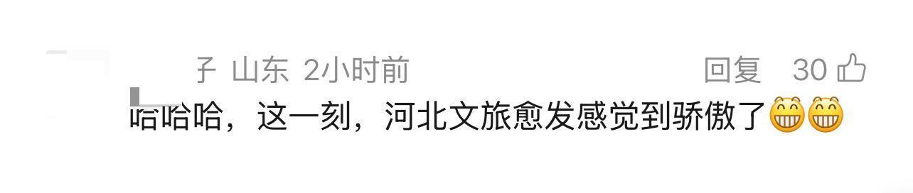 不仅如斯,网友驻防到,微视频的标题来自河北文旅标语“这样近那么好意思,周末到河北”,纷纷示意“身为河北东谈主,我骄傲”“这标语,咱们河北给了”。