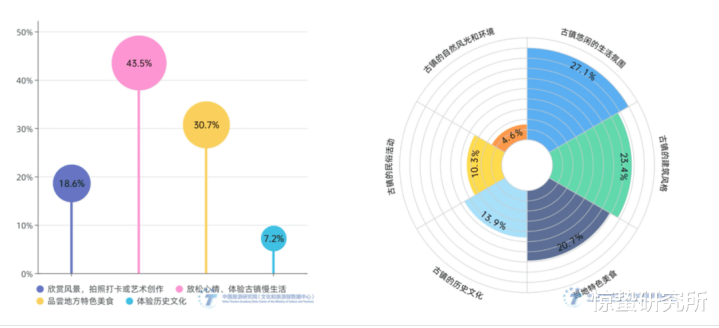 与此同期,尽管旅客吐槽古镇过度交易化和同质化,但《2024年古镇旅游发展禀报》夸耀,最诱惑旅客的身分恰正是“适意的生计氛围”(27.1%),其次是建筑魄力(23.4%)与特点好意思食(20.7%),而历史文化、习尚举止等更深层的元素反居自后。旅客前去古镇的主要贪图,鸠集在“温暖热枕、体验慢生计”(43.5%)、“品味所在好意思食”(30.7%)和“拍照打卡”(18.6%)。