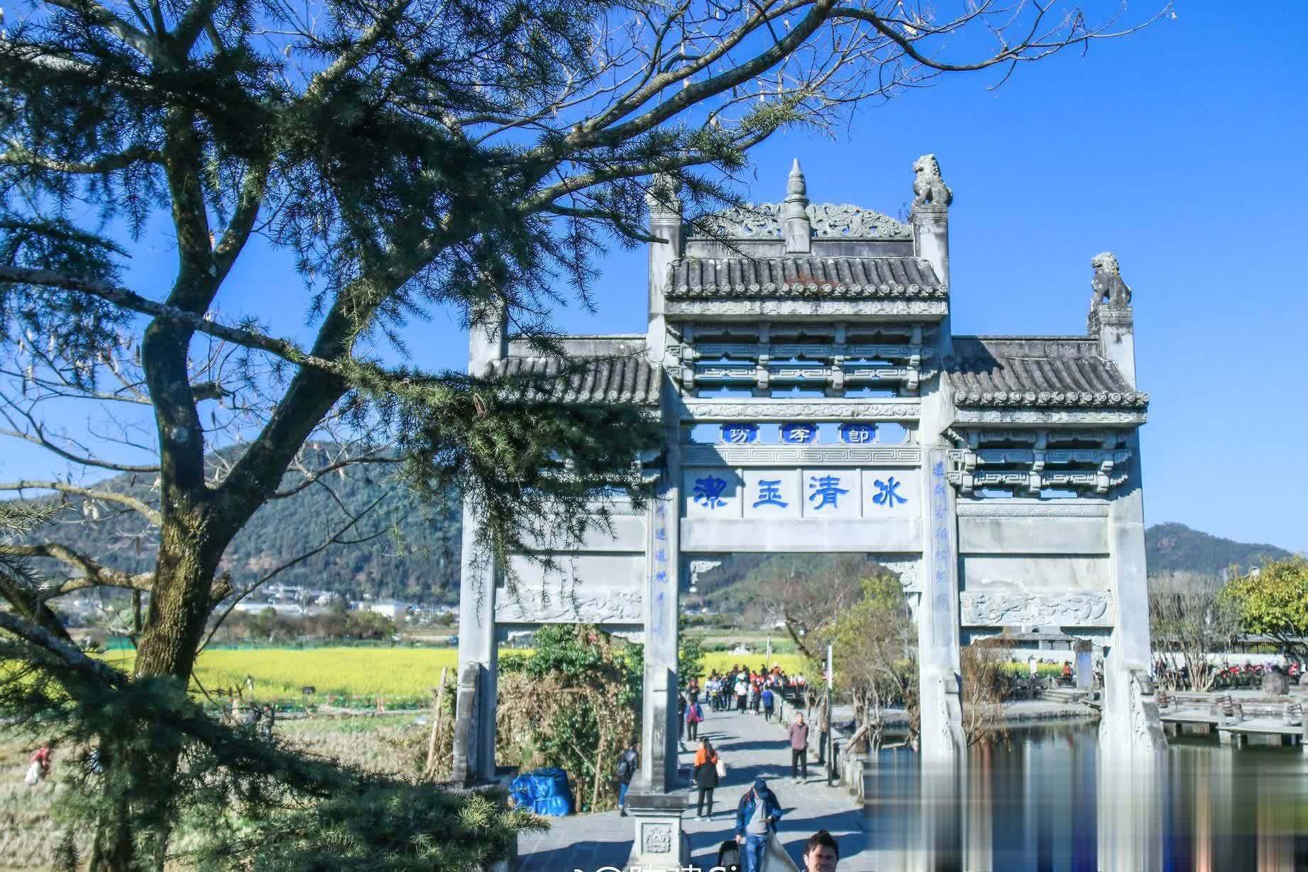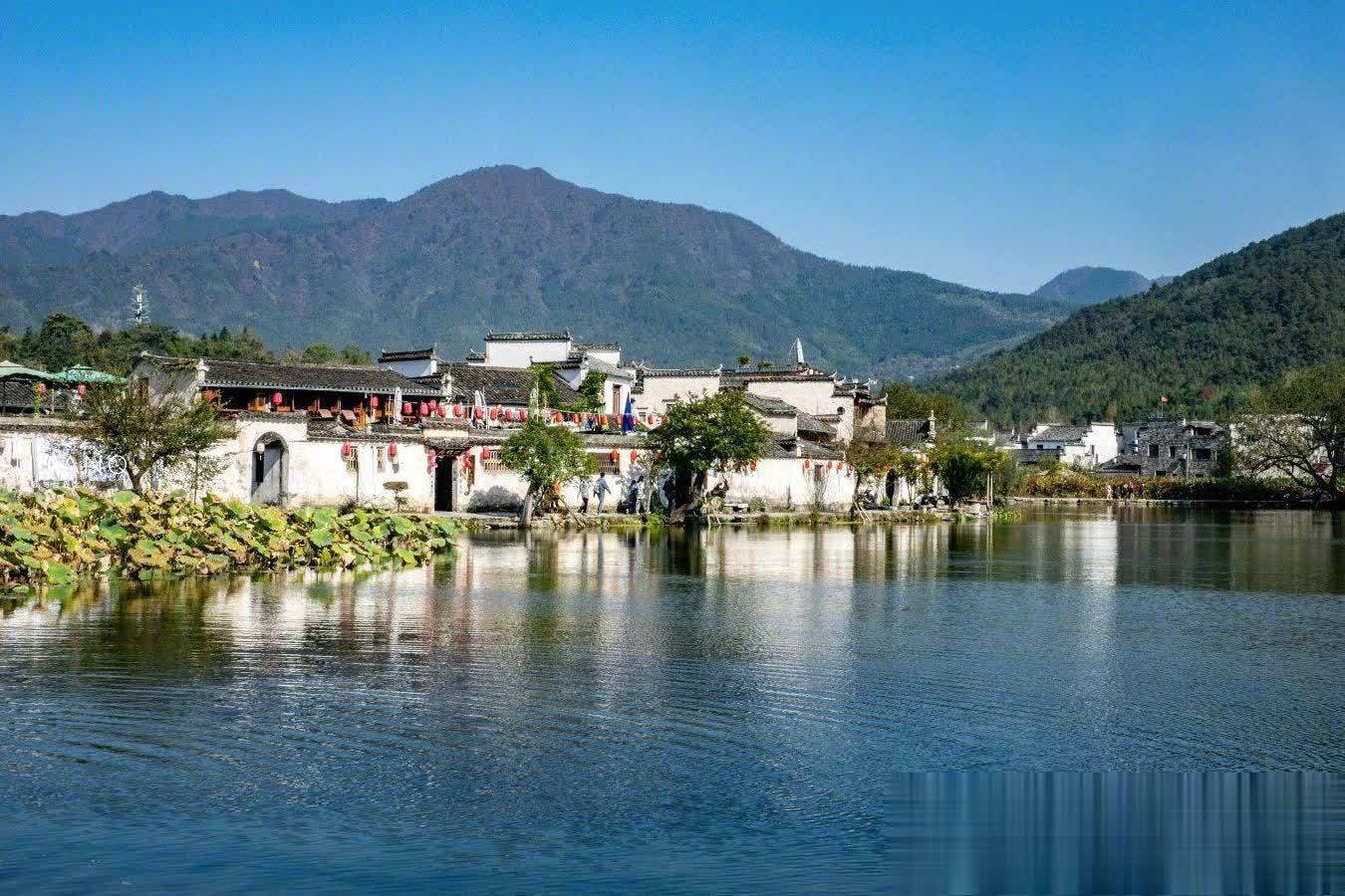 村中的南湖,如解除面宽敞的镜子,反照着周围的青山绿树和白墙黑瓦的徽派诞生,组成了一幅绝好意思的山水画卷。