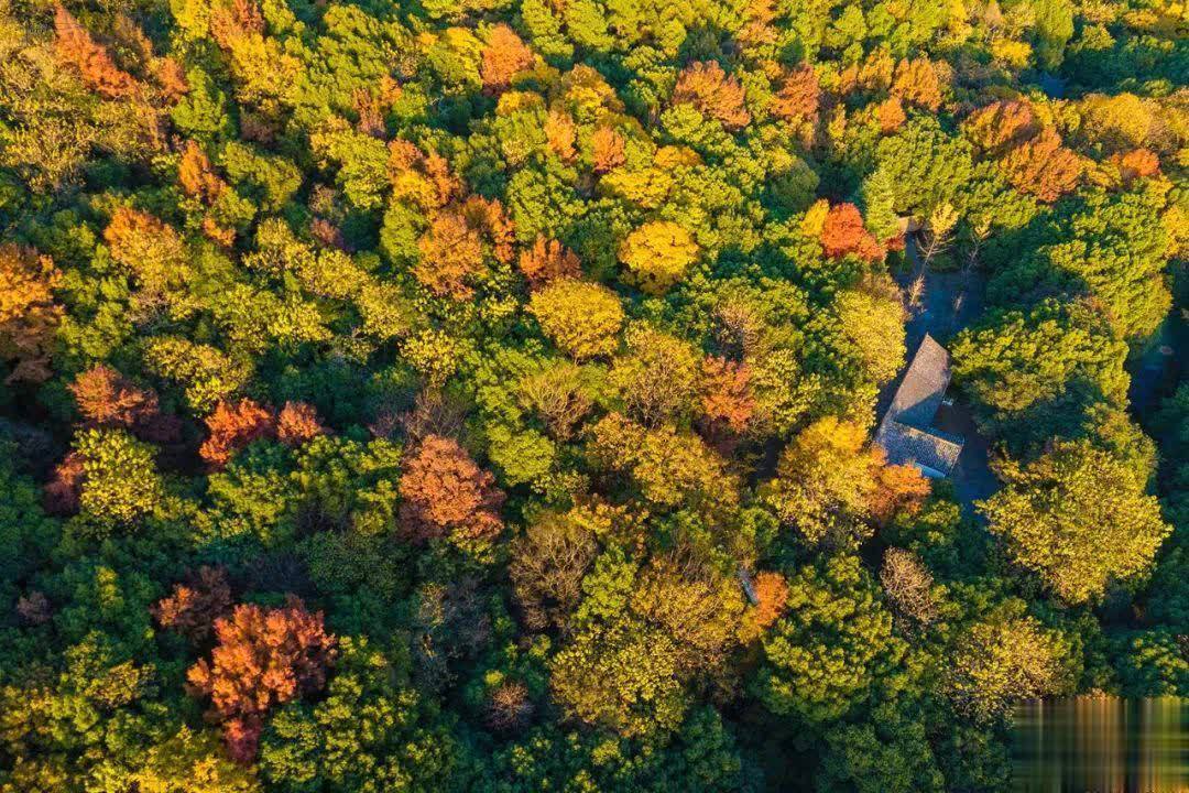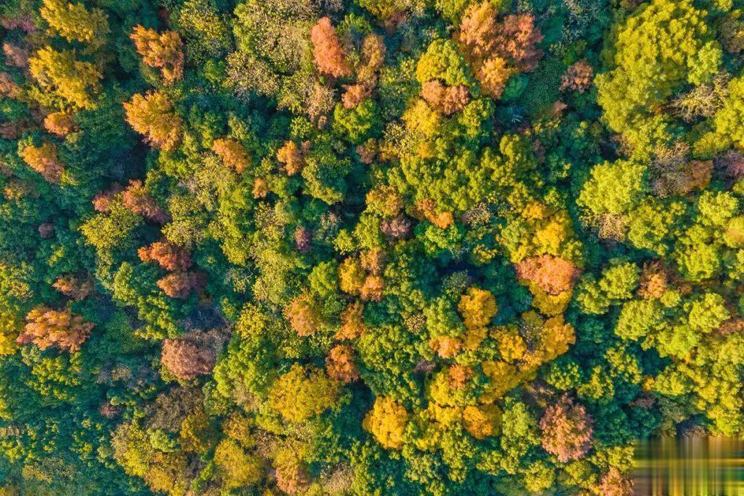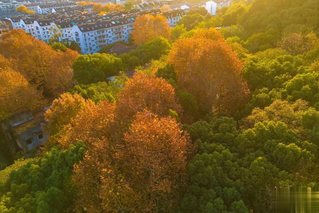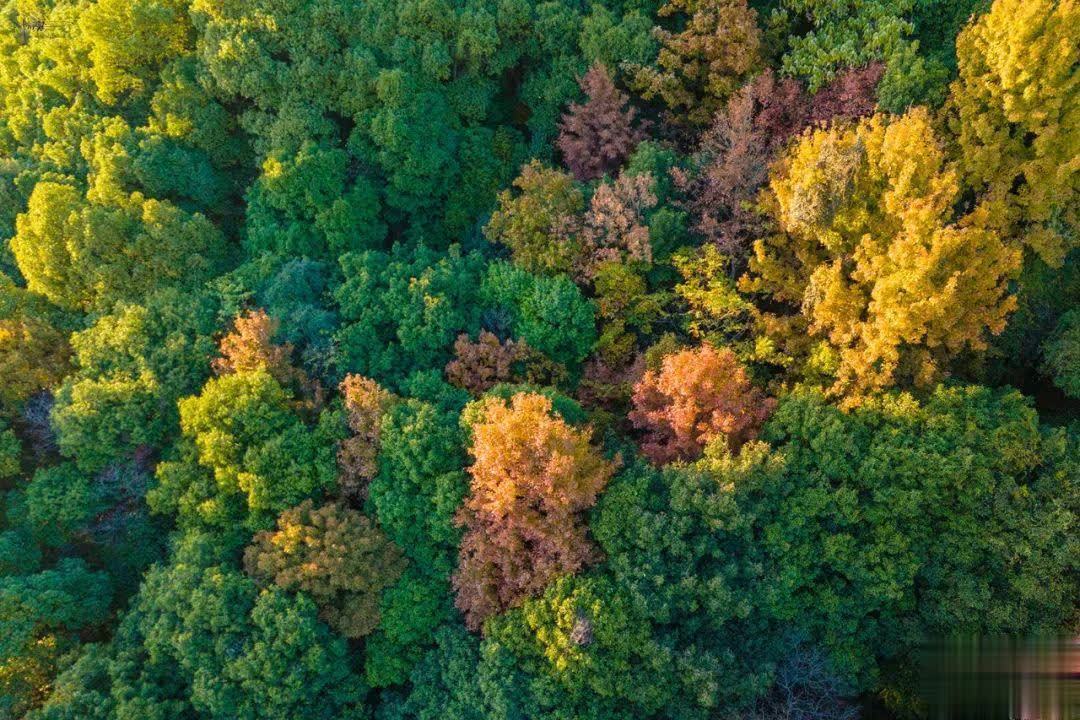 昨天天气清朗,我去半猴子园游玩,并尝试了一次深秋(实质上仍是干涉冬季,但此时的杭州振作极度迷东说念主)的航拍。这是我从小玩耍到大的方位,没念念到从空中看下去,总共这个词山脉呈现出五彩斑斓的秀气现象,让东说念主令东说念主沉迷。