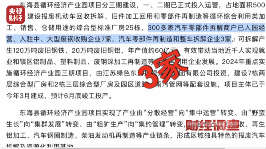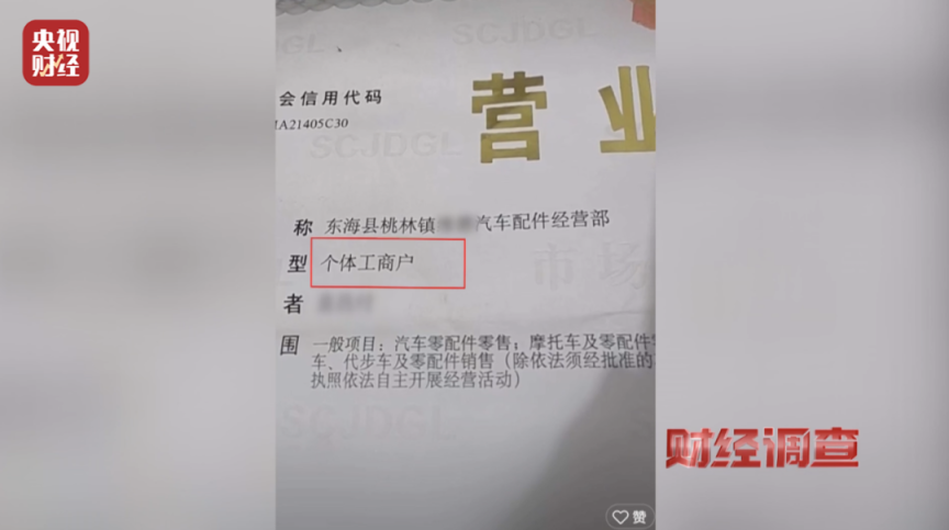 记者在东海县轮回经济产业园内探访的多个售卖报废车零部件的商家,他们出具的揣测禀赋均涌现为个体工商户,并不具备《报废天真车回收搞定看法》中所要求的禀赋和出产加工条目,却暗暗从事着报废车辆的拆解业务。