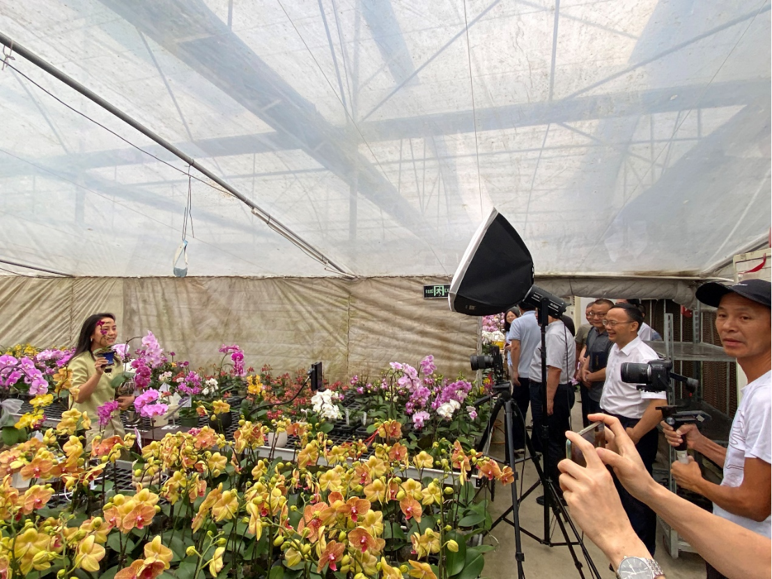 珠海市悦顺生物科技有限公司兰花坐褥基地正在开展直播带货。