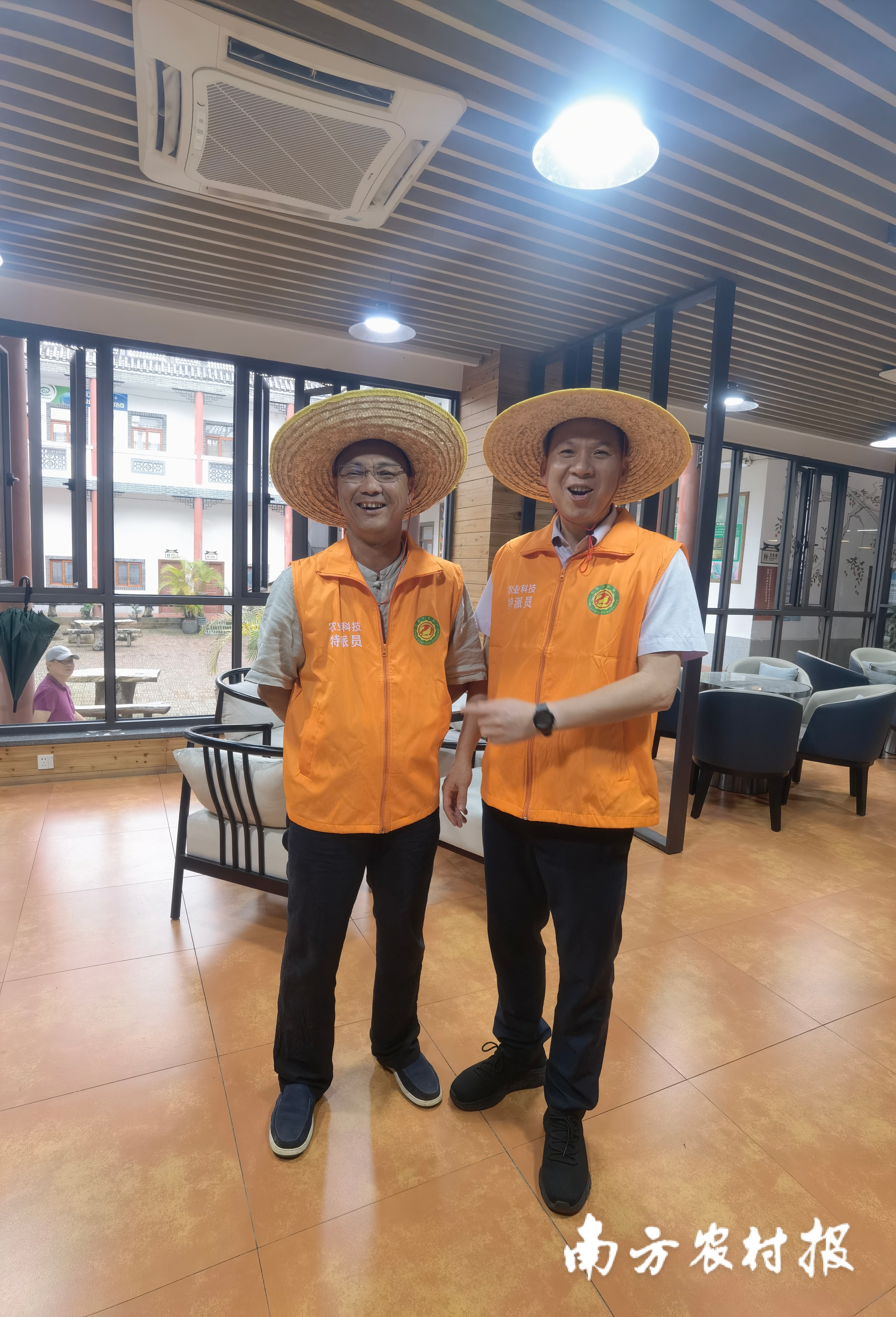 仙村镇镇长钟灼坤(右一)与基岗村村长陈浩潮(左一)在基岗村荔枝博物馆