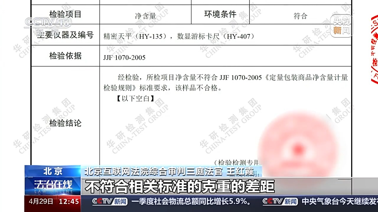 北京互联网法院玄虚审判三庭法官 王红霞:坐褥商对我方坐褥的商品的标注,它是有完了权有决定权的,但是它也莫得不祥举证讲明说商品在出厂的时候,克重是相宜条目的这么一些把柄材料,是以咱们觉得说它有欺骗的专诚。条目坐褥商来承担500块钱的处感性补偿包袱。