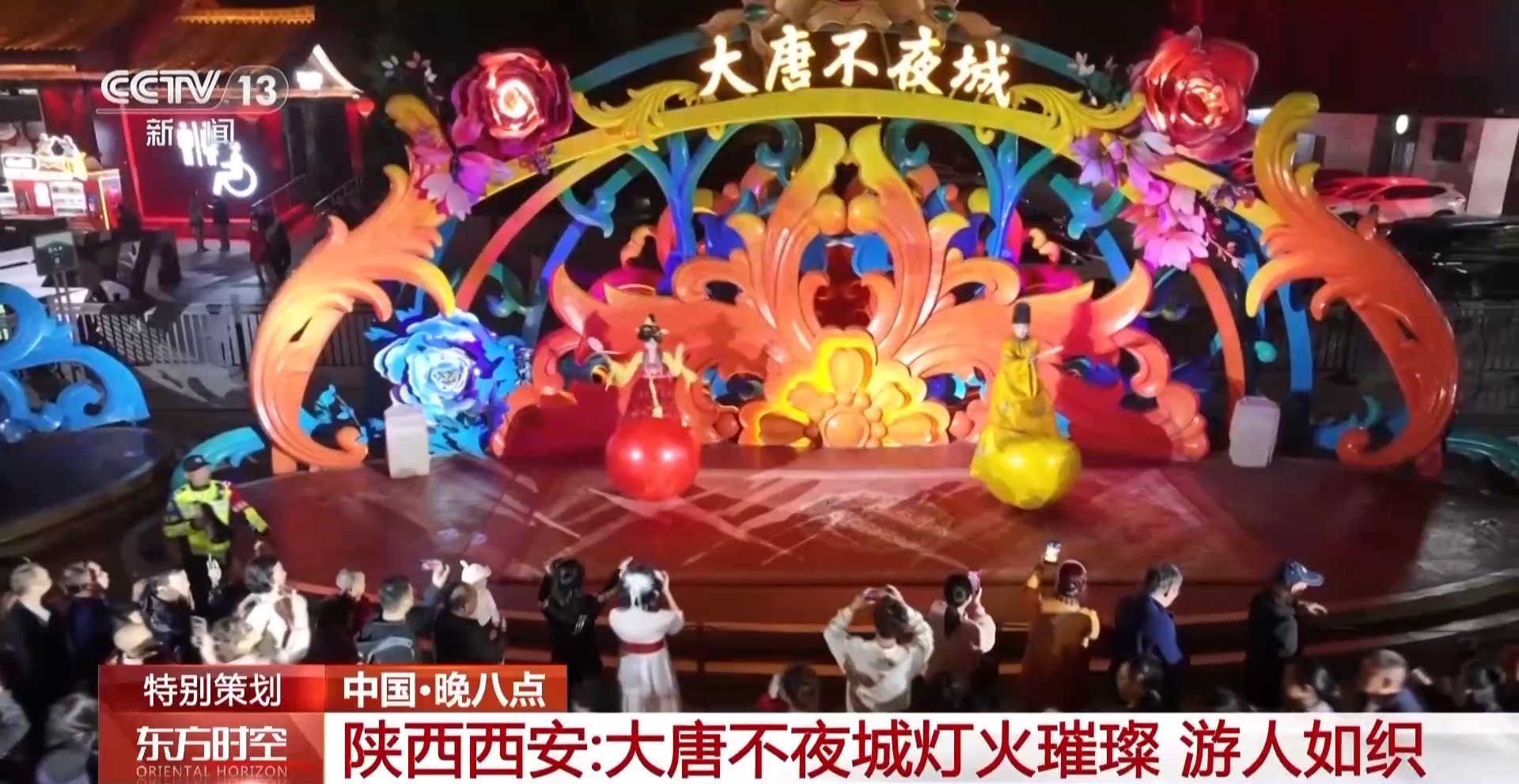 总台记者 常青:大唐不夜城步碾儿街,是西安晚上最蓬勃搅扰的所在之一。好多搭客穿上了多样样式、不同面貌的汉服,仿佛一秒钟穿越回盛唐时期的蓬勃市井。以大雁塔为滥觞,一齐走来,不错感受到“长安宫阙九天上”的仿唐树立群,谈路中间有以“开元盛世”为主题的5大雕琢群,不错说是一步一景。