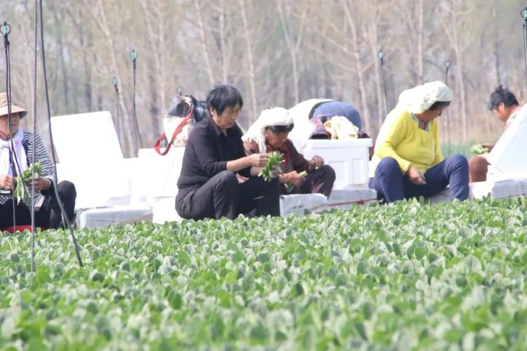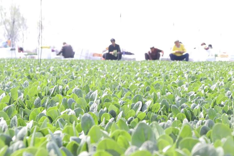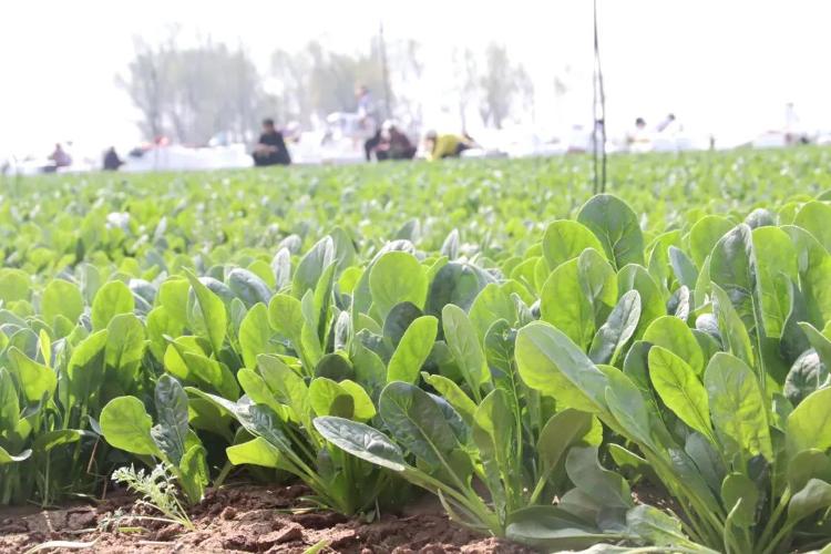 4月11日,邹平市台子镇红宋村党支部领办互助社菠菜莳植基地参加采收期,菜农们穿梭在田间地头,采摘、搬运、装箱、封口,一箱箱碧绿的菠菜,满载着丰充的但愿。
