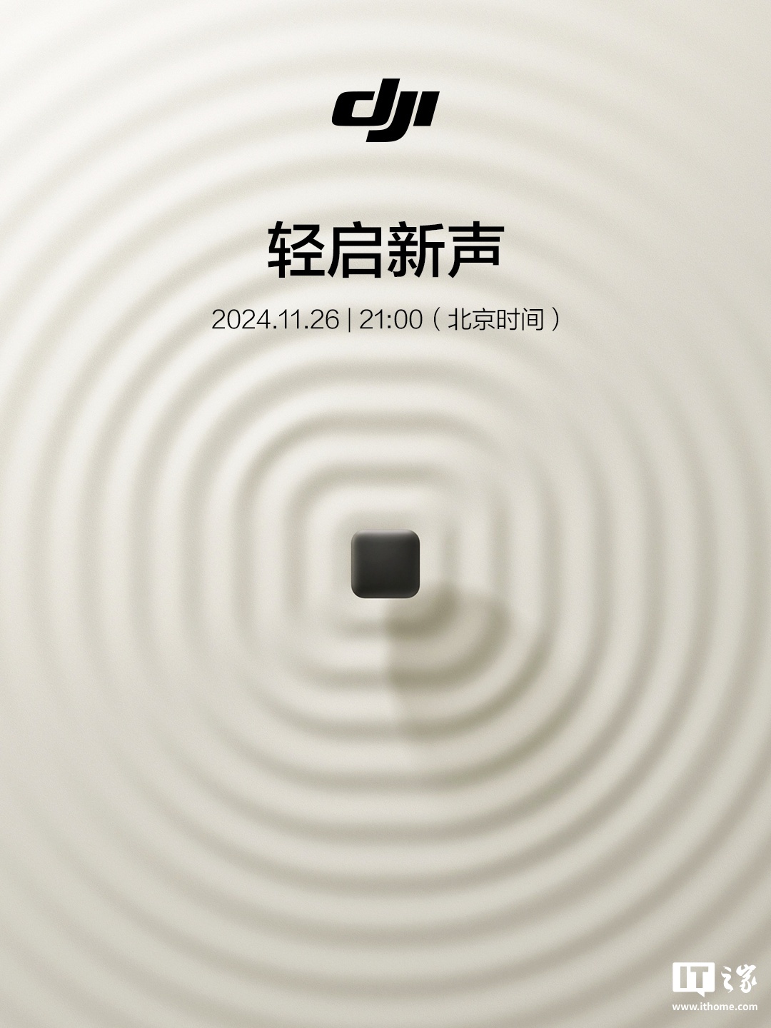 IT之家 11 月 19 日音尘,大疆今晚文告,将于北京本领 2024 年 11 月 26 日 21:00 发布新品,宣传语为“轻启新声”。