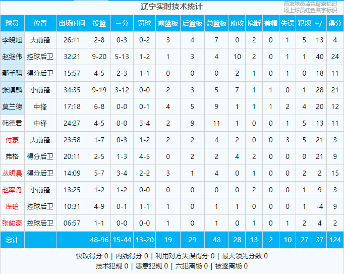 第四节辽宁队很快非常到30分,剩下技能成为垃圾技能和替补练兵技能。最终比分124-87,辽宁主场37分大捷深圳,获得完整开门红!