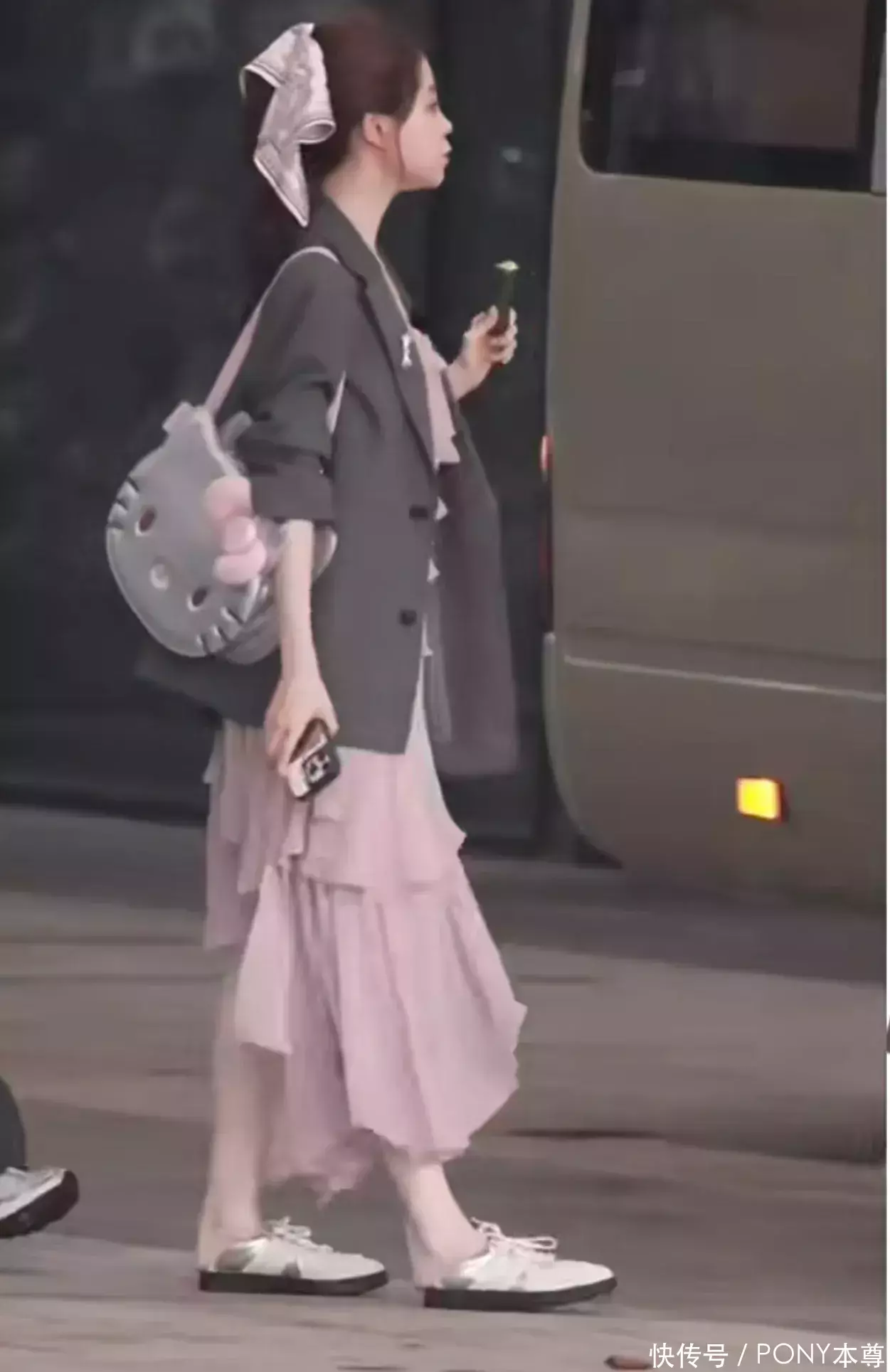 而结巴灰色千里稳感的要道,在于内搭的精巧接受。祝绪丹搭配了一件粉色不法例裙摆吊带裙,微弱的面料自带英俊感,甜好意思的粉色中庸了西装的利落,不法例裙摆又增添了经营细节,幸免了“甜腻感”,反而多了几分灵动。这种“中性外衣+柔好意思内搭”的组合,恰是初秋显高显瘦又权臣的诀要。