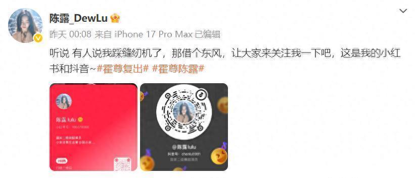 2025 年 11 月 17 日凌晨,千里寂许久的陈露短暂在酬酢平台发声,以一句打妙语回话网传的 "下狱" 传闻:"传闻,有东说念主说我踩缝纫机了"。