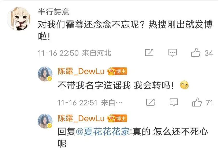 当网友簸弄她 "对霍尊铭肌镂骨" 时,陈露更是径直回怼:"不带我名字非难我,我会转吗?确切,何如还接续念呢?",以致坦言 "看到这张脸确切念念吐"。这番表态也呼应了 2021 年的风云源泉:往时陈露曝光霍尊群聊记载,控诉其不尊重女性、冷暴力等行为,导致霍尊晓示退圈;此后续陈露因索求 900 万 "离异赔偿" 被立案拜访,两边透彻反目。