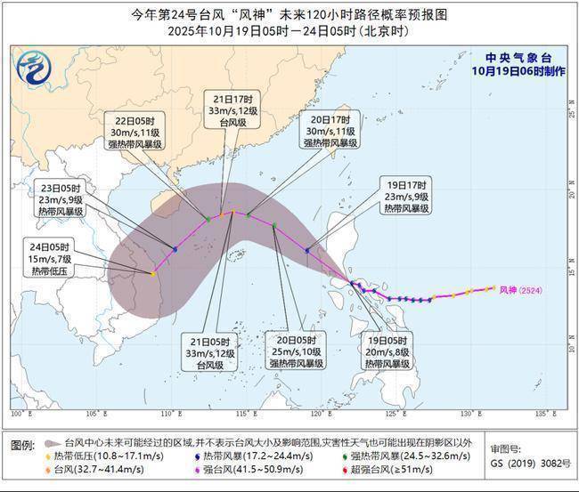 长沙晚报掌上长沙10月19日讯 中央自豪台10月19日6时发布台风蓝色预警:本年第24号台风“风神”(热带风暴级)昨天傍晚在菲律宾吕宋岛东南沿海登陆(18米/秒,998百帕),今天(19日)黎明5点钟其中心位于菲律宾吕宋岛上,即是北纬14.0度、东经122.0度,中心隔邻最大风力有8级(20米/秒),中心最低气压为995百帕,七级风圈半径150-180公里。