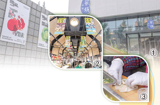 图②:上海“我家菜场”内,“一蔬果一句话”海报让市集环境更年青态。