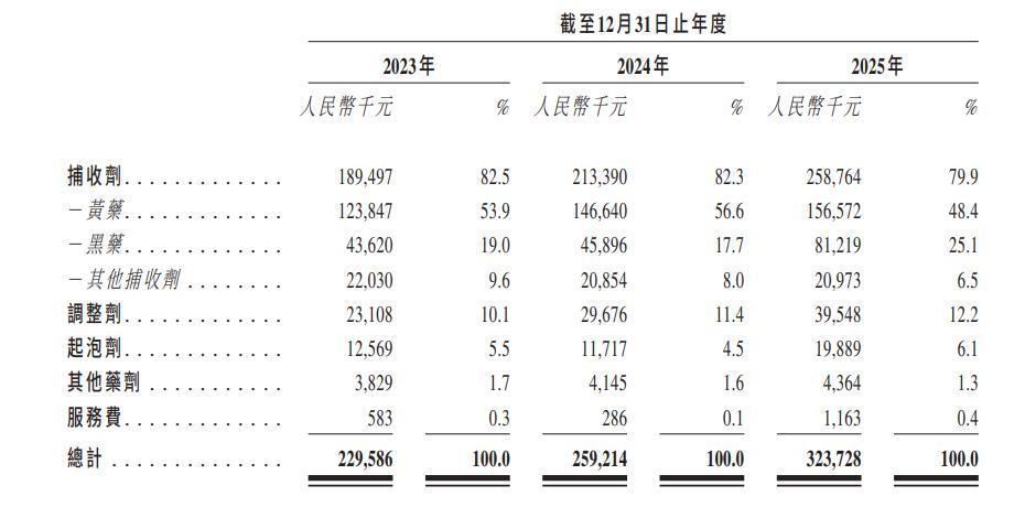 由于每种药剂在浮选工艺中推崇著特有且互补的作用,客户每每将这些药剂看成组合决议一并采购,其中捕收剂每每占比最大,因为其在遴荐性靶向和回收有价矿物颗粒方面推崇中枢作用。在较小进度上,公司还通过提供全面的时间接济行状,携带部分客户优化居品使用,从而产生收入。