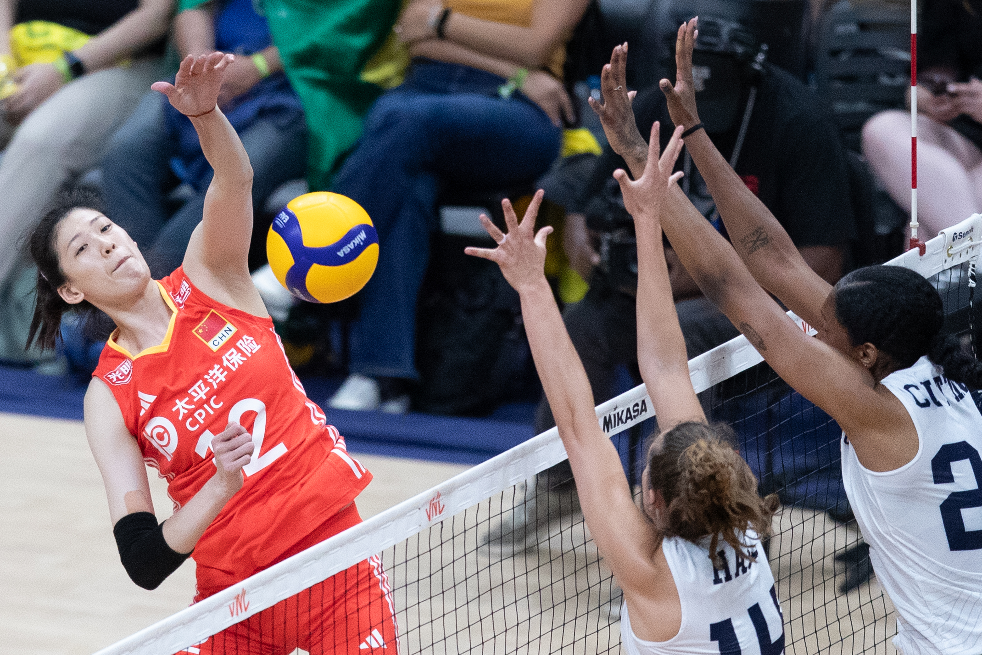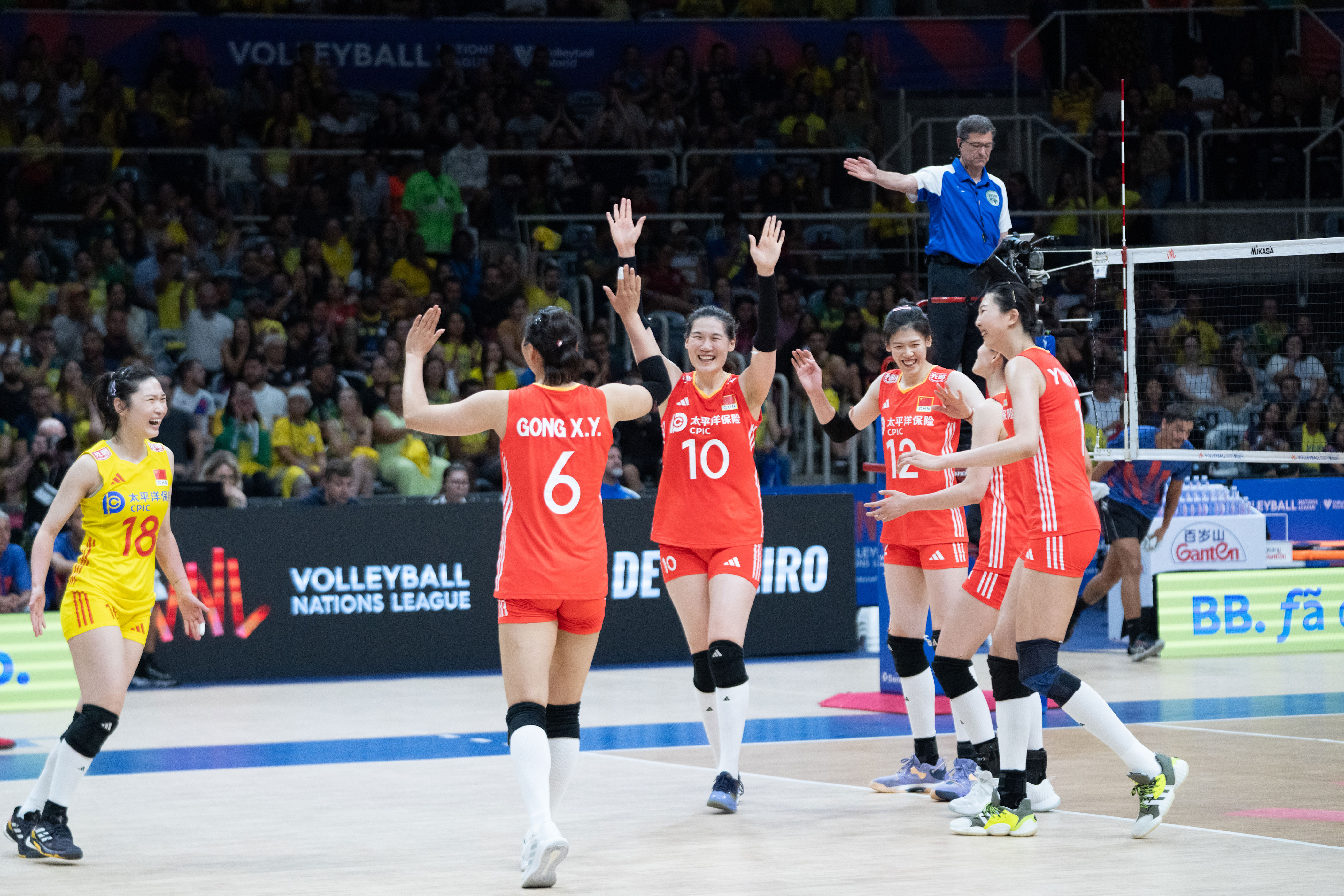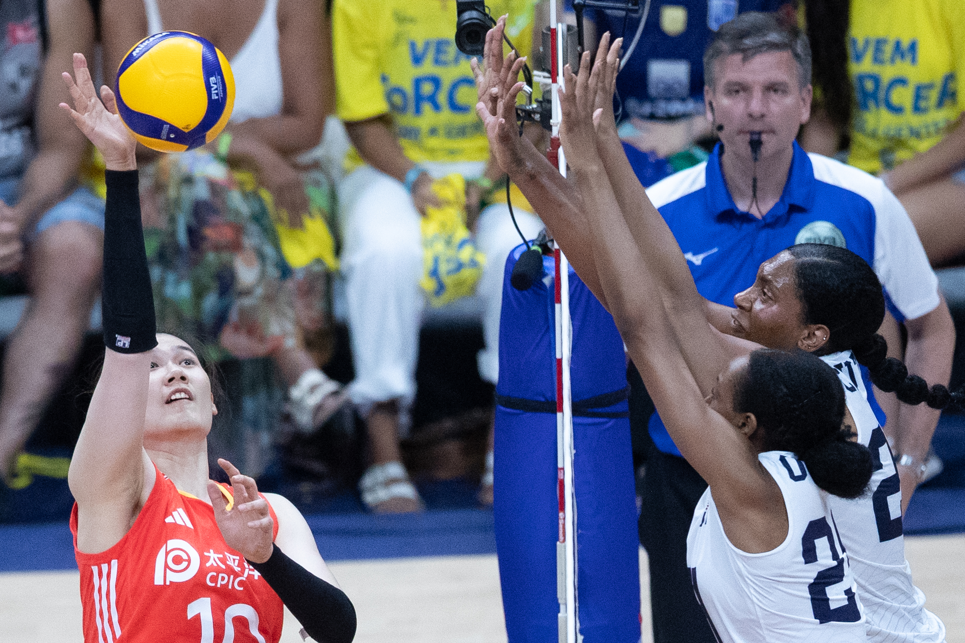 5月16日,在2024宇宙女排联赛里约热内卢站比赛中,中国队3比1慑服好意思国队。