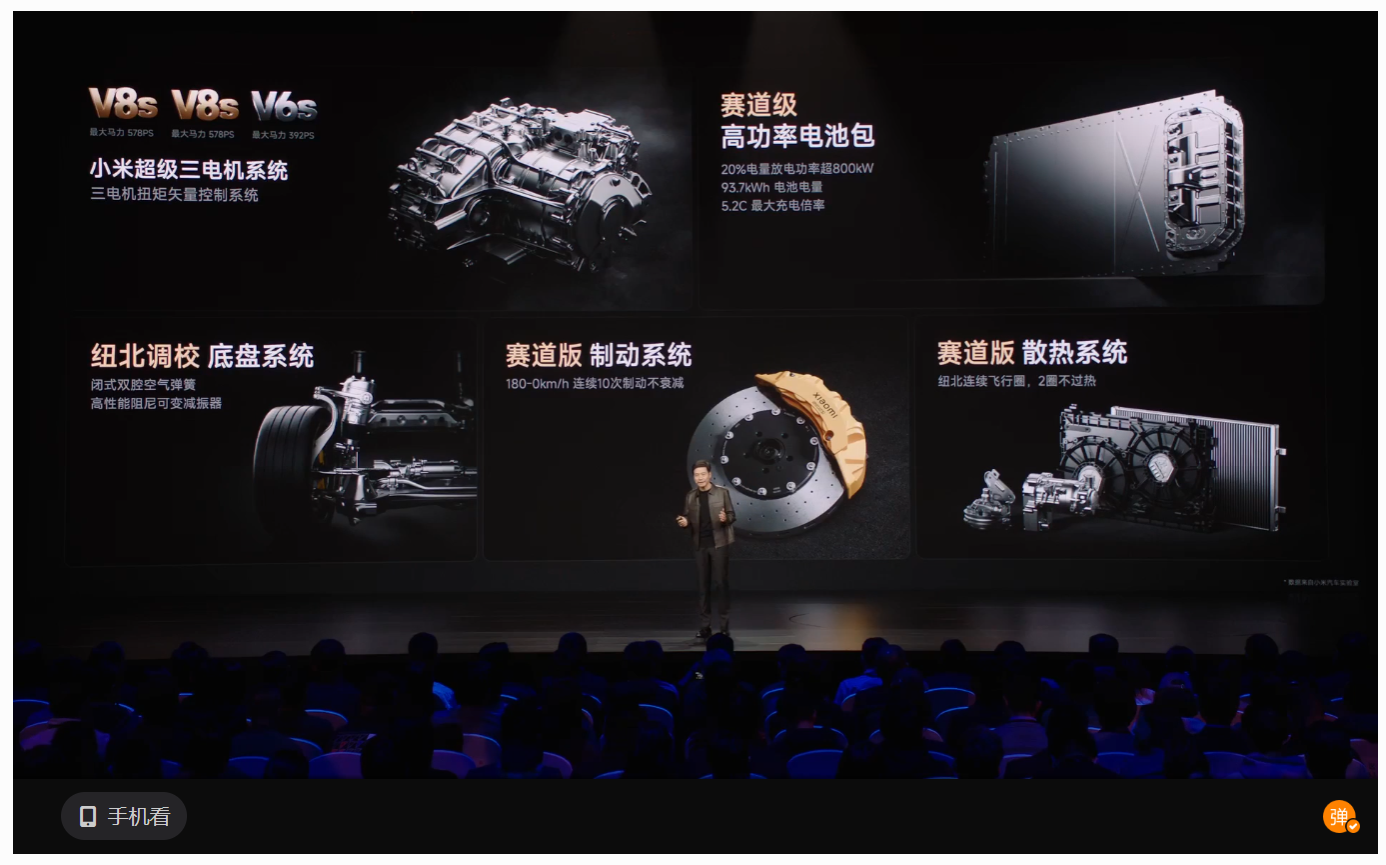 性能上,1548PS马力,最高时速359km/h,百公里加快1.98s。搭载小米超等三电机系统V8s+V6s;纽北调校底盘系统;赛谈版制动系统;赛谈级高功率电板包。5.2C充电倍率,10%~80%充电11分钟。该车还配备三电机扭矩矢量戒指系统,兑现每秒500次的电机扭矩戒指,电机扭矩转机0-90%仅需15ms。赛谈款式可及时圈速露馅,守旧外放声浪。碳陶瓷制动盘;Akebono制动卡钳;前六后四活塞;21"倍耐力 P ZERO 5轮胎。