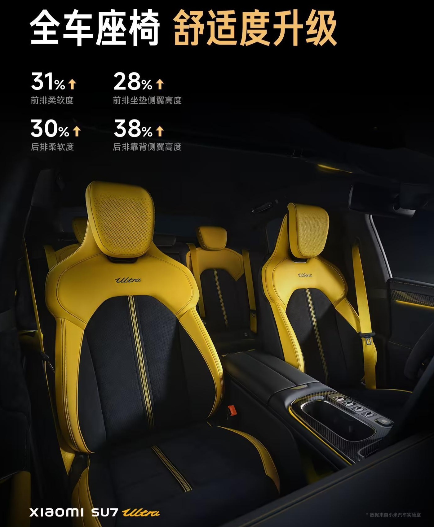 此外,小米SU7 Ultra提供了双50W无线充电,主驾副驾齐能用;后视镜守旧自动防眩目;全车四门声学夹层玻璃,轮胎杂音甩掉系统;全车四门玻璃秉承全新隔热涂层;化妆镜守旧三挡亮度/色温可调。碳陶瓷制动盘;Akebono制动卡钳。